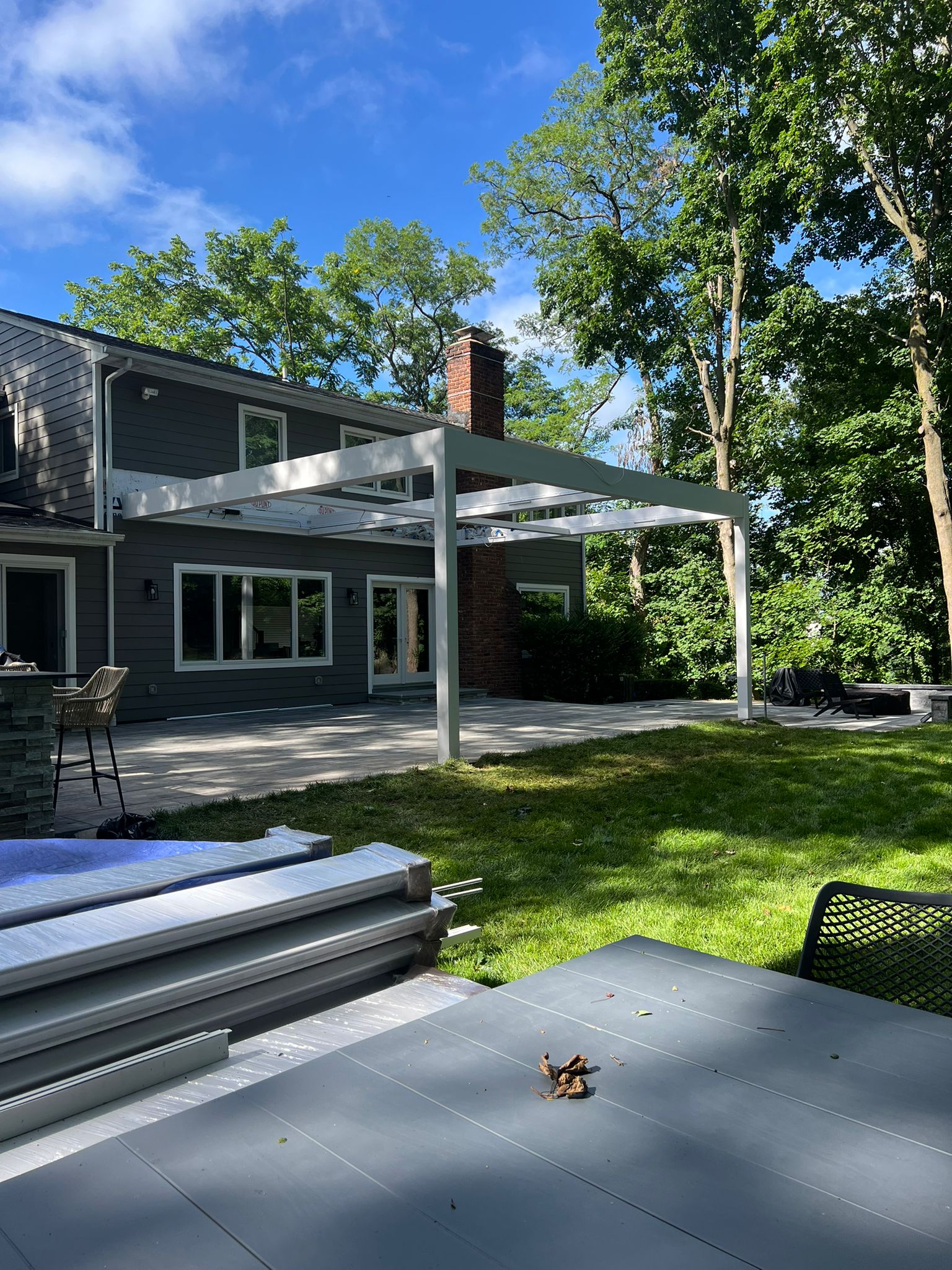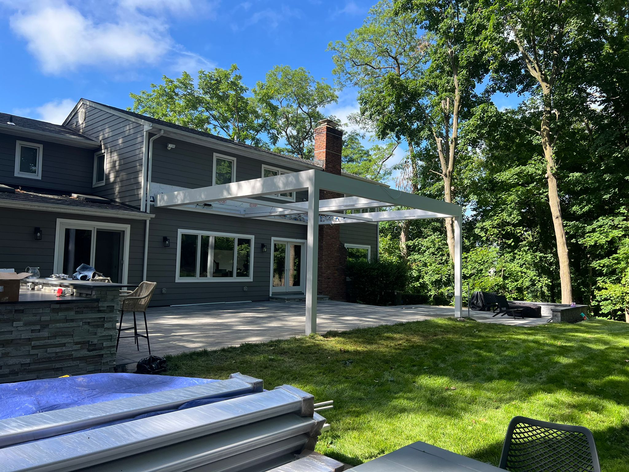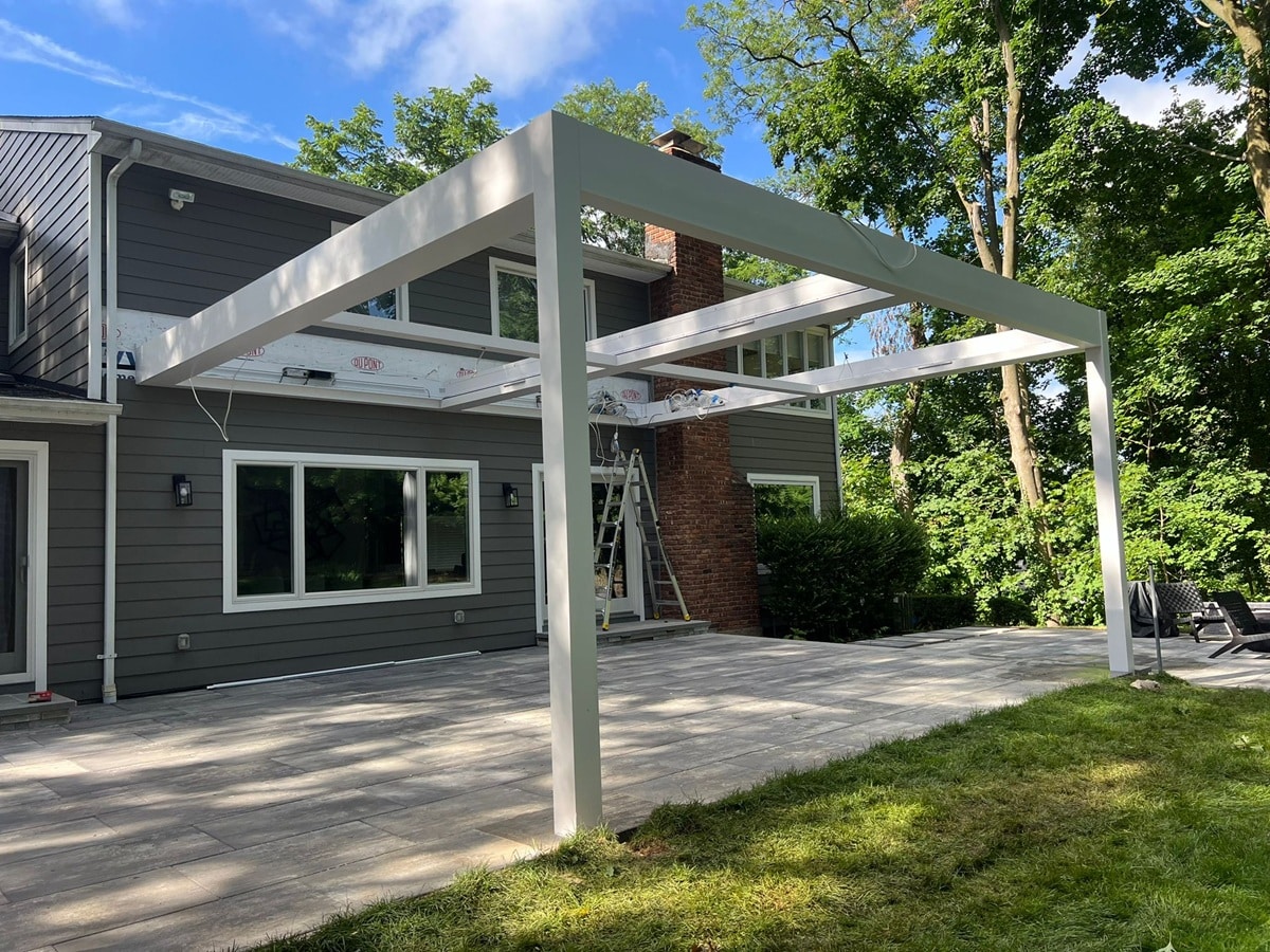 The homeowners wanted complete control over their outdoor environment, allowing them to enjoy the patio in comfort no matter the weather. To achieve this, we installed an all-white modern R-Blade system that blends seamlessly with the home while providing adjustable shade, rain protection, and privacy.
