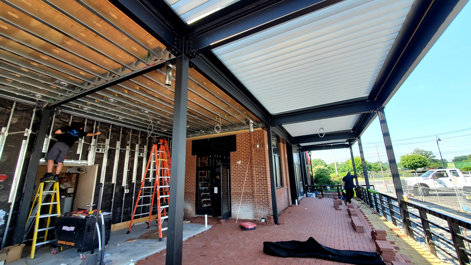 We installed a motorized louvered roof system, transforming the patio into an all-season bar and dining area. Guests can now enjoy the space comfortably whether it’s sunny, rainy, or cool—turning the outdoor area into one of the restaurant’s most popular spots for dining and lounging.