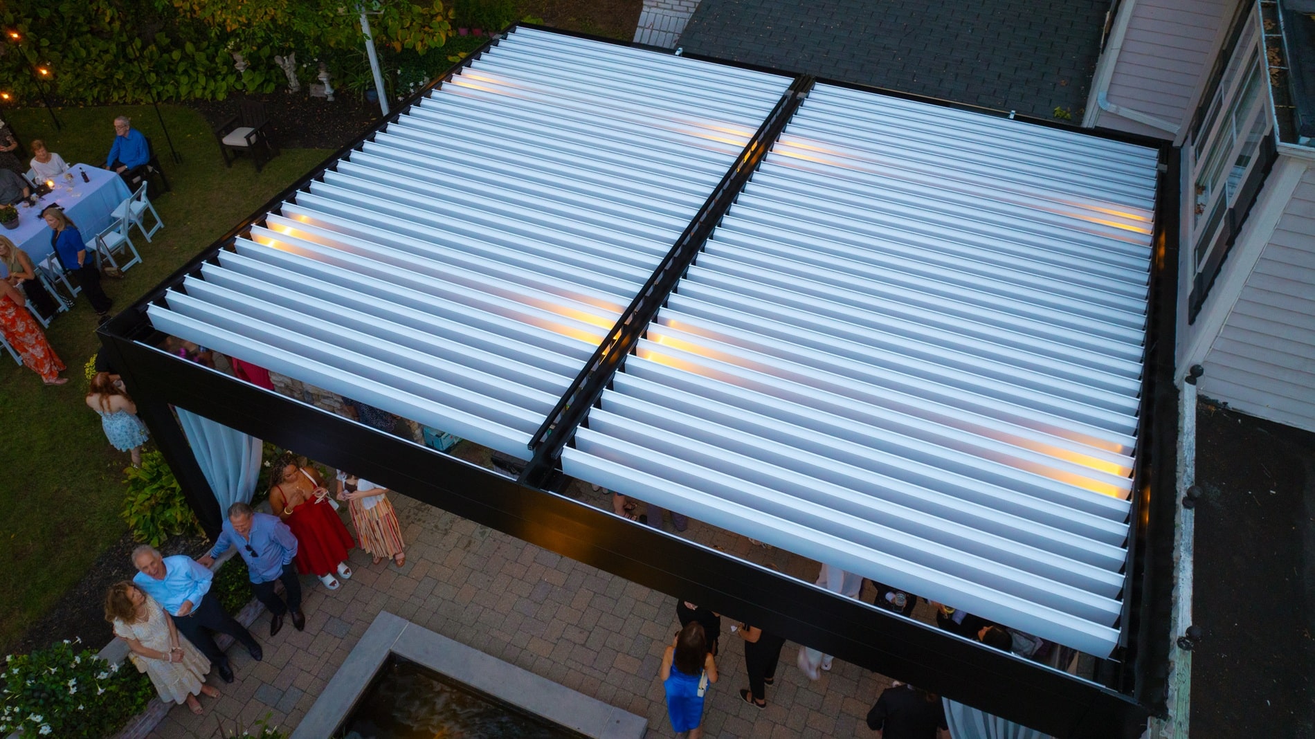 The results were outstanding — the patio was completely transformed into a versatile outdoor retreat. The space became the highlight of the home, and it was even used to host the client’s engagement party, showcasing how the louvered roof created a memorable and functional setting for such a special occasion.