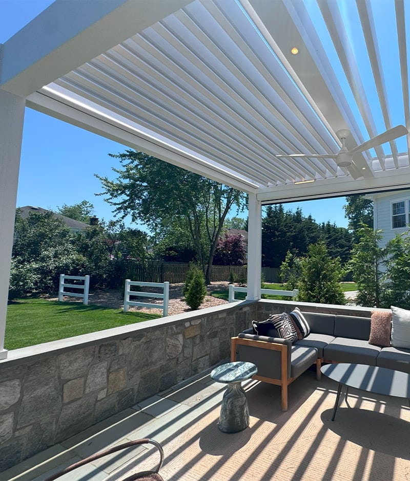 We installed a modern-style louvered roof system in Madison, New Jersey, to transform a patio that was previously unusable due to the intense sun. The homeowners wanted a comfortable and stylish outdoor space, and the motorized system provided the perfect solution.